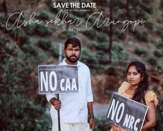 സിഎഎ പ്രക്ഷോഭം: വേറിട്ടൊരു സേവ് ദ ഡേറ്റ്; പ്രതിഷേധവുമായി പ്രതിശ്രുത വരനും വധുവും