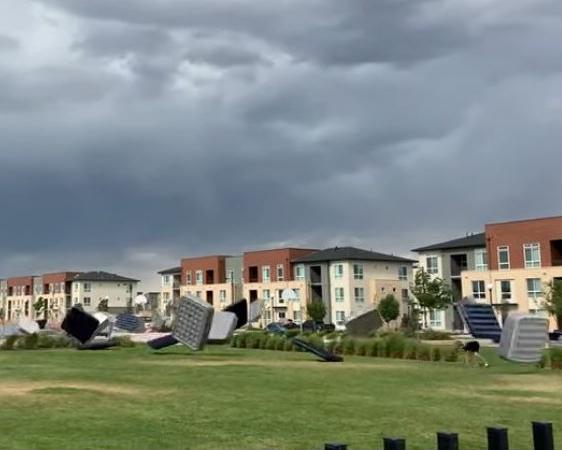 കാറ്റിൽ പറന്നുവീണത് ഡസൻ കണക്കിന് മെത്തകൾ, വീഡിയോ വൈറൽ !